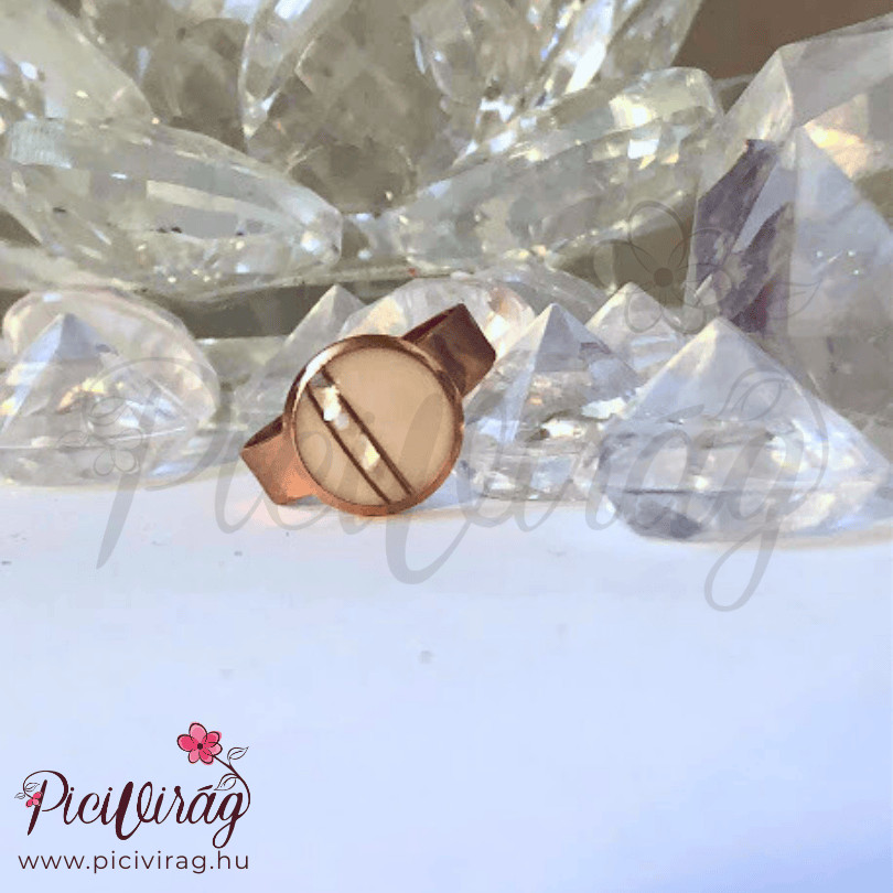 A Teljesség gyűrű arany színben különleges eleganciát sugároz. Az alapja nemesacél, amelyet finom galvanizált aranybevonat tesz ragyogóvá. Ez a bevonat elegáns, nőies megjelenést biztosít, azonban a mindennapos használat során a felszíne fokozatosan kopásnak indulhat. Ez természetes folyamat, és nem minősül gyártási hibának, így a garancia erre a kopásra nem terjed ki.
